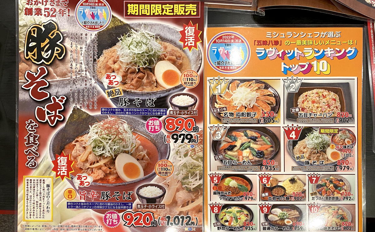 TBS平日朝の報道バラエティ『ラヴィット!』2022年10月14日の放送にて、県民が愛する静岡ローカル中華ファミレス・五味八珍が特集で紹介されました!