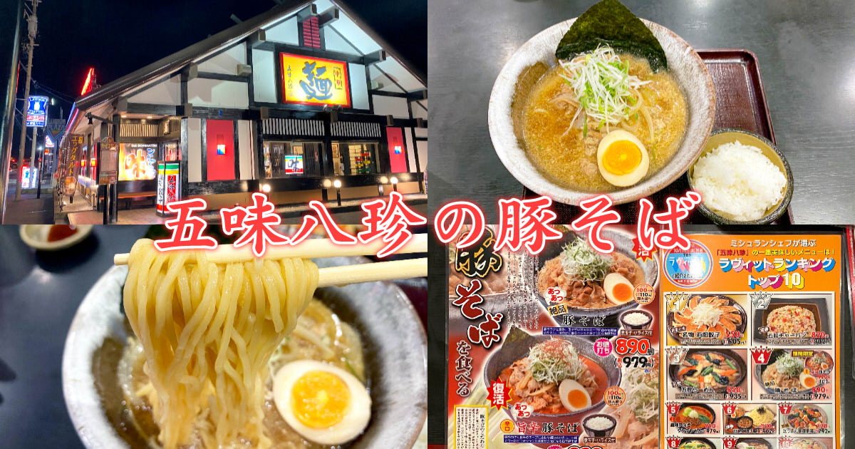 五味八珍の豚そばは、2021年10月に創業50周年の記念?で登場した、五味八珍の今までのラーメンとは別方向の魅力を持った一杯。