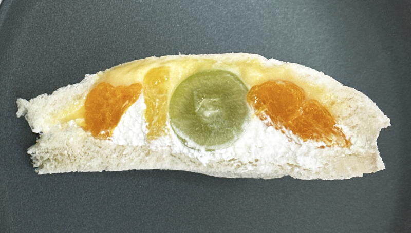 たっぷり生クリームとカスタードで果物を包み込んだフルーツサンド。どちらも甘さが絶妙で、くどくはなくもスイーツ感抜群!パンは甘い具材がより合う印象ですね。