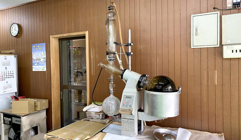 馬場製菓さんでは伝統的な茶飴の他、現在の7代目から始めた健康商品の開発も進めており、こちらはお茶からカテキン成分を抽出する機械。