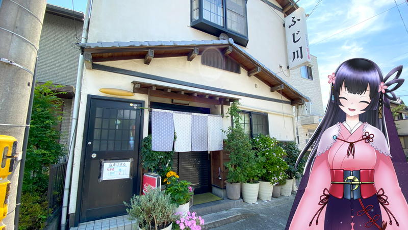 民家一体型なレトロな外観。ふじ川食堂と呼ばれていますが、看板はふじ川だけですね。手拭いで作ったような可愛い暖簾も目印です。