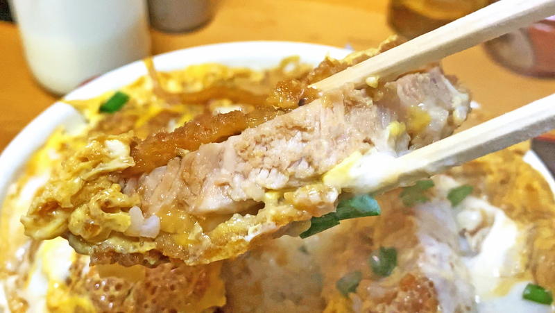 肉自体もかつ丼より少しだけ厚め?で、更に脂が乗ったビジュアル。カツ丼は出汁で衣の食感は無くなっていましたが、こちらは滅茶苦茶カリッカリです!