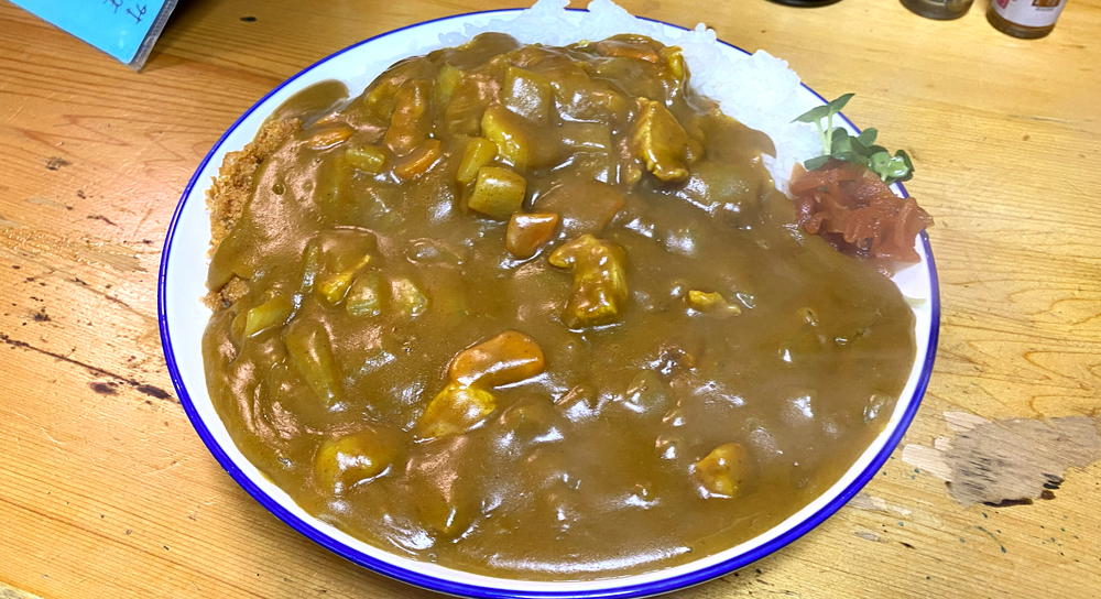ベースは家庭風と言うか、学校給食を思い出す懐かしい味わいで、そこに醤油?が隠し味に入ってそうな風味。ゴロゴロ乗った具の食感と、ルウ自体もとろみが強めです。