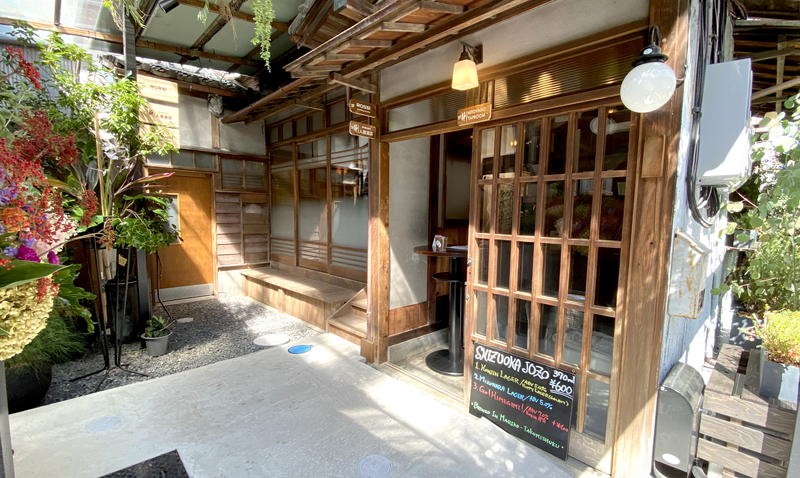 間の区画には自由に座れる古民家そのままの縁側もあり、フルーツジュース・カフェのテイクアウト・静岡醸造のお酒などを楽しめるスペースとなっています。