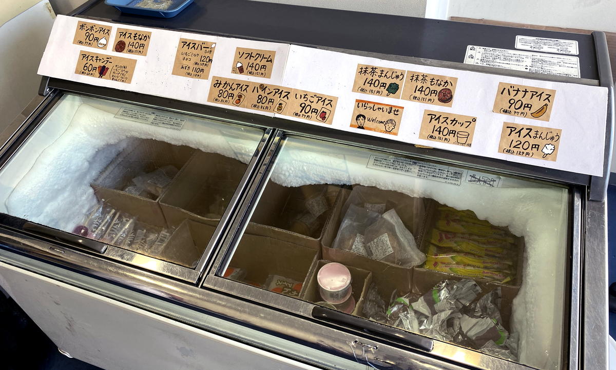 アイスケースは3つ並んでいましたが、販売商品が入っているのは写真の1つだけ。もう1つは取り置き用、3つ目は業者卸用みたいです。