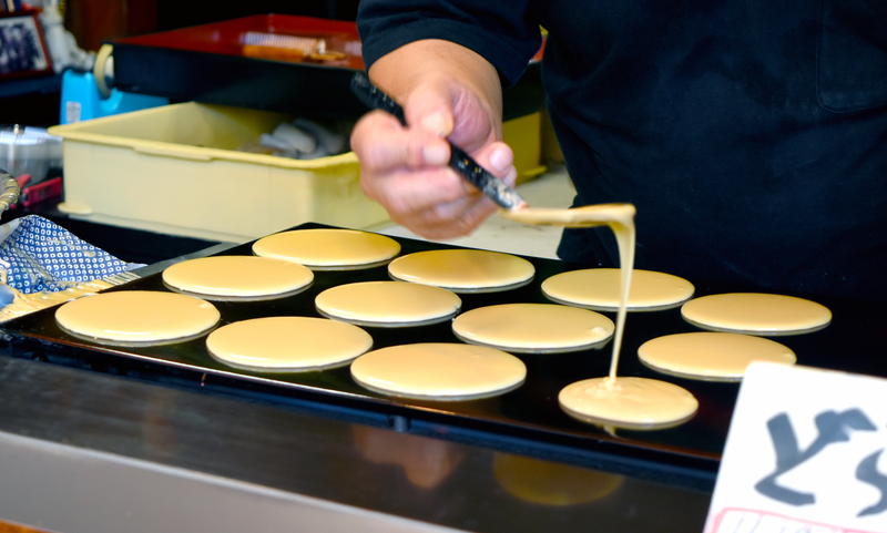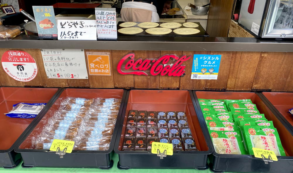 葵区馬場町、静岡浅間神社前・浅間通りの和菓子店。実演販売でベテランの技を楽しみながら、焼き立てをいただくこともできるどら焼きが名物です。
