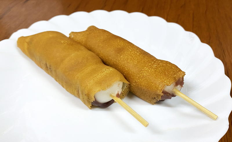 味のベースはどら焼きに近いのですが、ただ餅を加えたどら焼きって感じでもなく、独自の魅力ある逸品です。2本で180円(2022年6月現在)とお手頃ですよ!