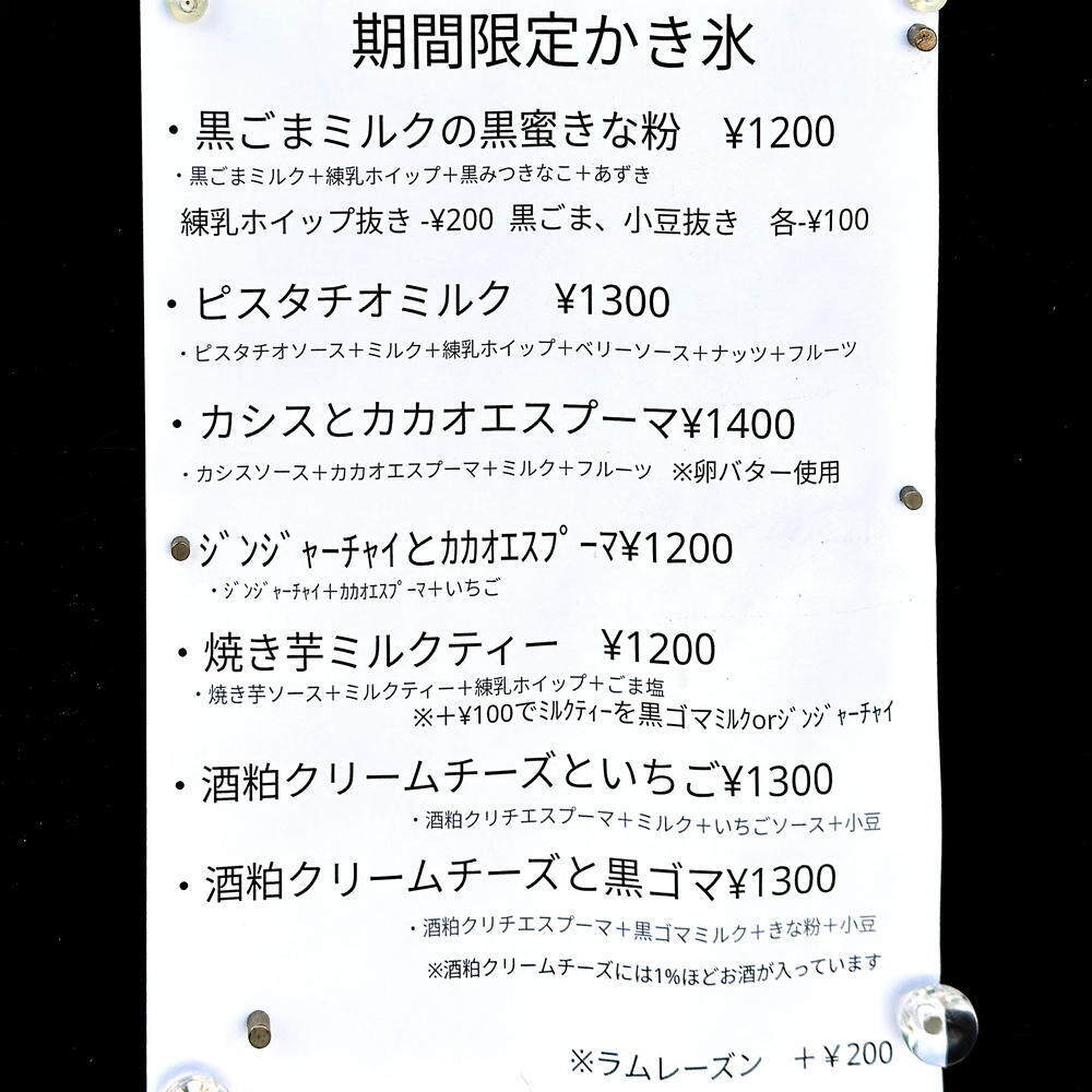 期間限定かき氷のメニューが、特に素材をたっぷり使用した豪華な品揃い。月に大体1~2回更新があり、季節らしい品が揃います。