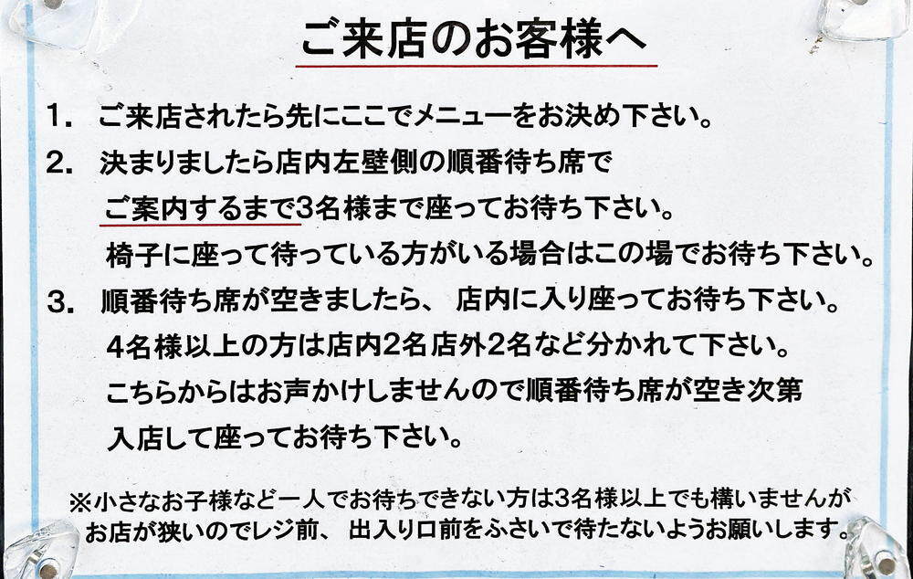 コンパクトな店内&基本ワンオペでの営業の為、スムーズに提供できるよう守ってもらう順番待ちの簡単なルールがあります。