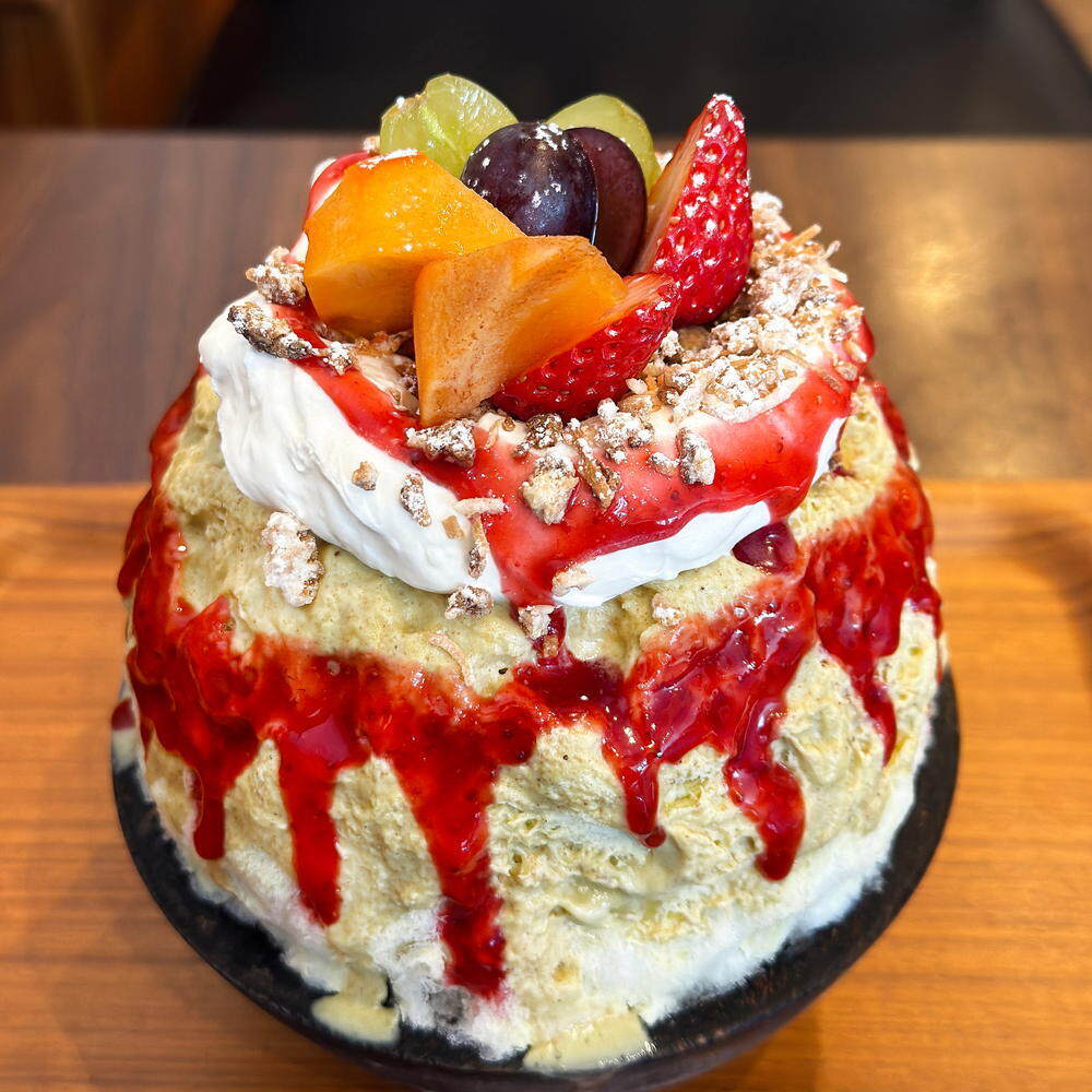 葵区七間町、青葉通交番近くにあるかき氷カフェ。旬の品や季節のイベントにあわせた期間限定フレーバーを中心に、見た目から豪華なかき氷を提供!
