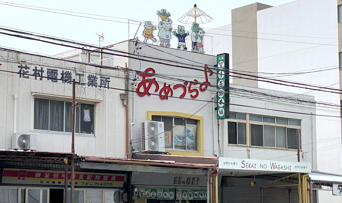 静岡浅間神社の赤鳥居前から左へ進み、県道27号・安倍街道を北へ1分程歩いた場所に、なんだか楽し気な外観の目立つ店頭。