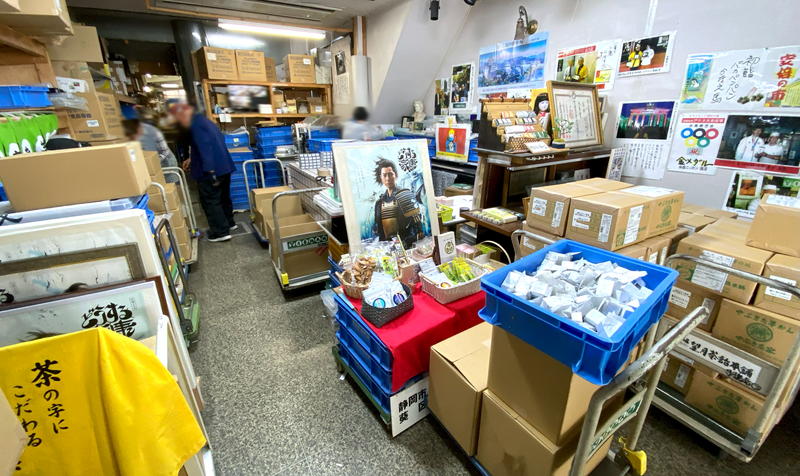 玄関だけ見ると老舗の茶問屋のような印象。タイミングによってかもしれませんが、私が訪問した際は出荷作業を行われていて店先も店内も段ボールだらけでした。