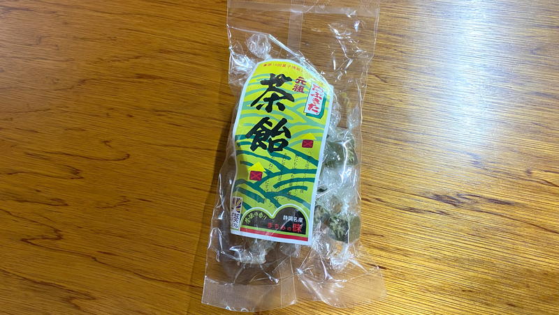 名物のやぶきた茶飴は135g入り個包装のパックが324円(税込)。茶飴以外にも塩・ブルーベリー・生姜の喉飴など、個性ある品が並んでいます。