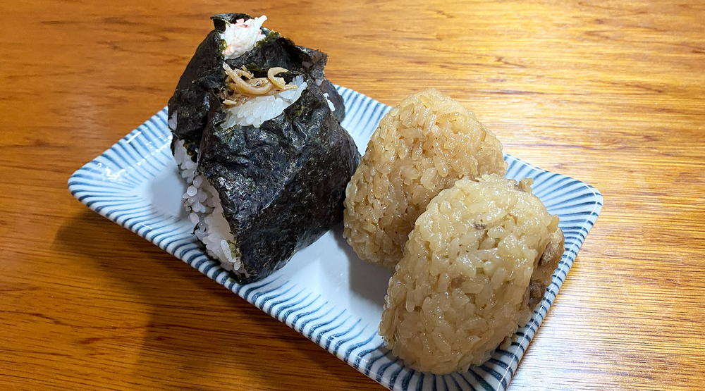 今回は握りたておむすび3種、とりめし・ちりめん・カニマヨと、出来合いの棚にあったとりごぼうをチョイス。持って帰ってすぐ食べたのでまだホカホカでした。