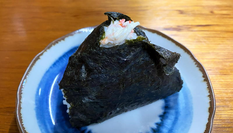 こちらはカニマヨ。ちりめんのように手で半分に割ろうとしたら失敗してしまったので割る前の写真で失礼します。