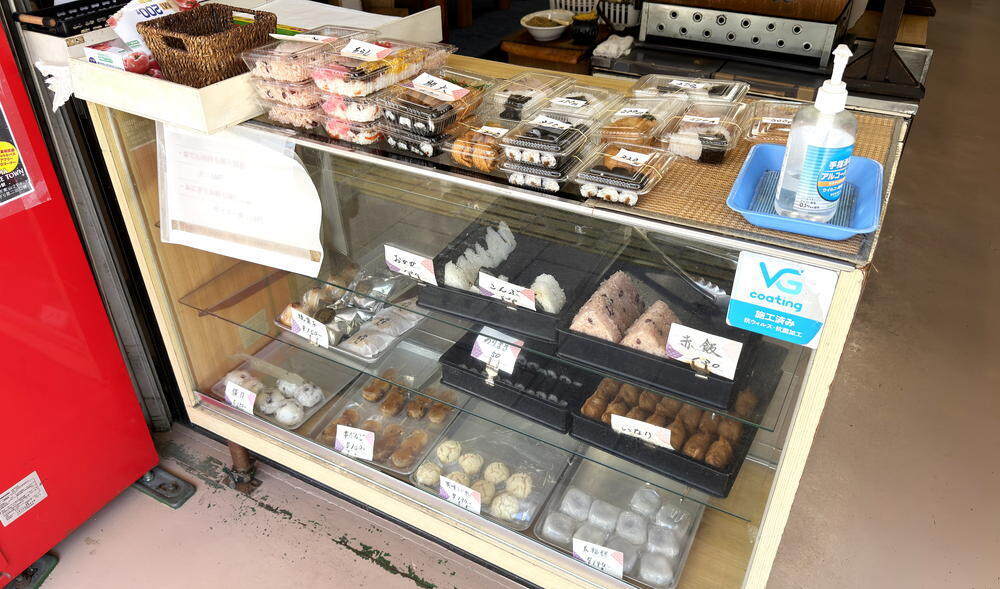 浅間通りを中町交差点の大鳥居側から進み、三叉路を2つ超えた右側。暖簾がと店前にある自販機が目印。入口に扉は無く、おにぎりなどのケースが店頭にあります。