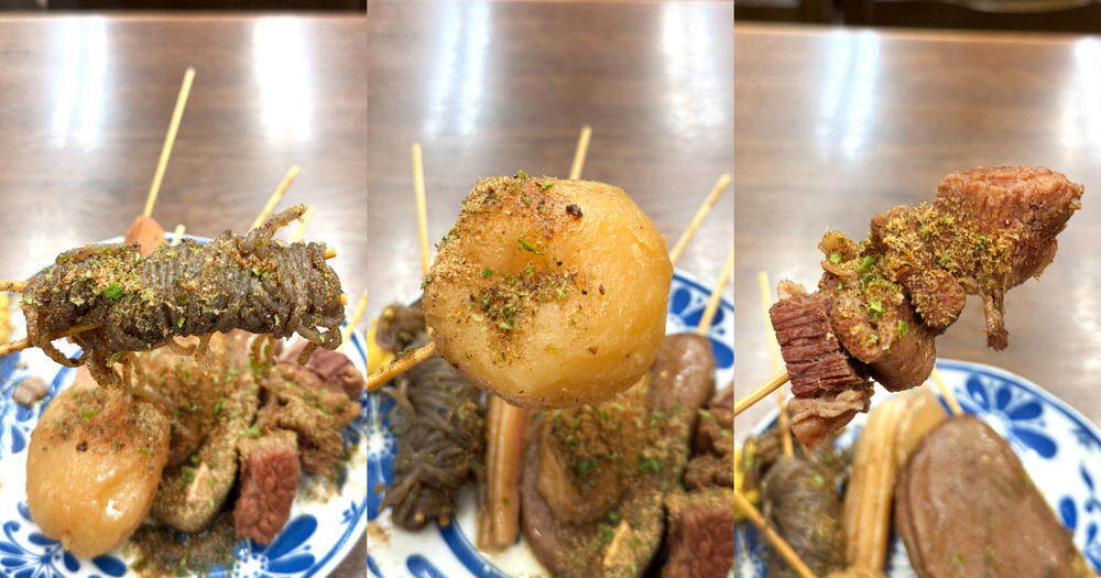 2本の串にそのままぐるぐる巻きつけ、見た目以上に食べ応えあるプリプリ糸こんにゃく。じゃがいもも丸々1個、ホクホク&クリーミーに自然な甘みも濃いめ。