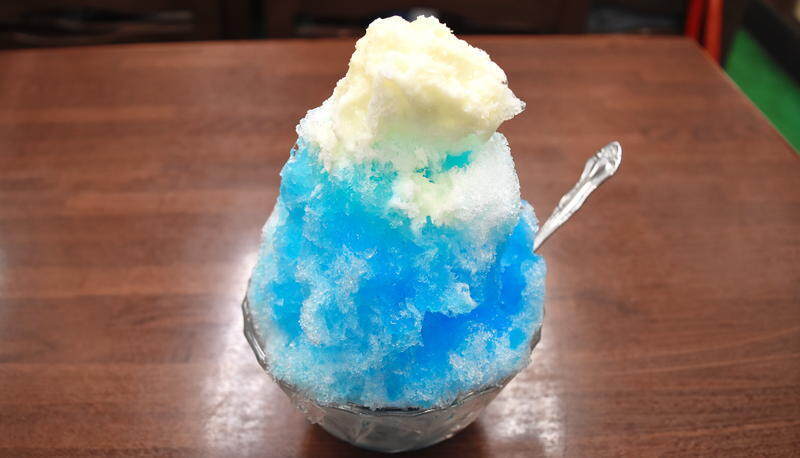 富士山氷はラムネ&ブルーハワイベースで、スッキリ濃い味おでんのお口直しにもなり、かつ練乳もたっぷりでスイーツ感抜群な一杯!