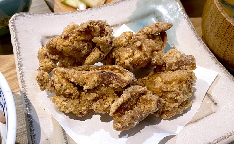 濃い目の竜田揚げ風醤油味で、生姜も効いていてご飯が進む味わい。肉自体がとてもジューシーで柔らかく、油っこすぎない逸品でした。