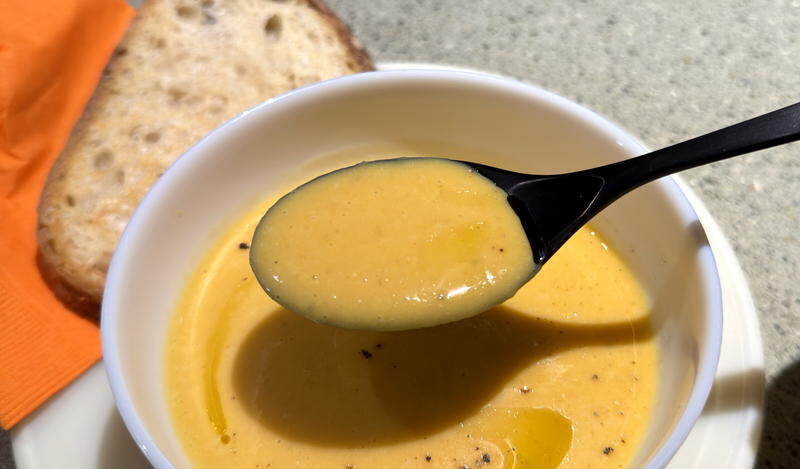 塩気はあっさり、土の香りというか人参そのままの風味が強く活きた仕上がりで、玉ねぎの甘さも自然に溶け込み、クリーミーなポタージュにまとまっています。