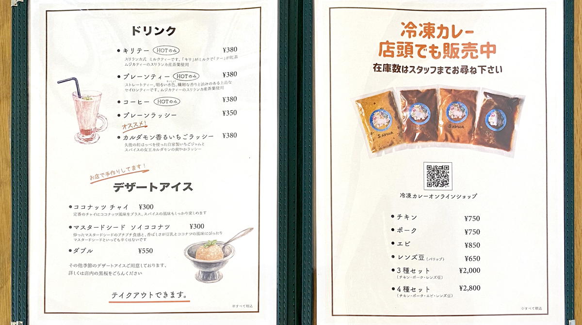 ドリンクもスリランカのミルクティーや、スパイス入りのラッシーなど個性あり。デザートはアイスのみですが、限定品含め珍しいフレーバーが揃っています。