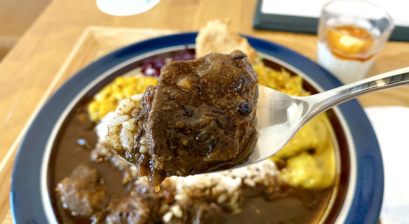 肉塊は舌にとろけるホロホロ煮込み状態ですが、肉の繊維を噛んで味わえる程度の絶妙な食感もあり、肉の旨味もバッチリ感じる逸品でした!