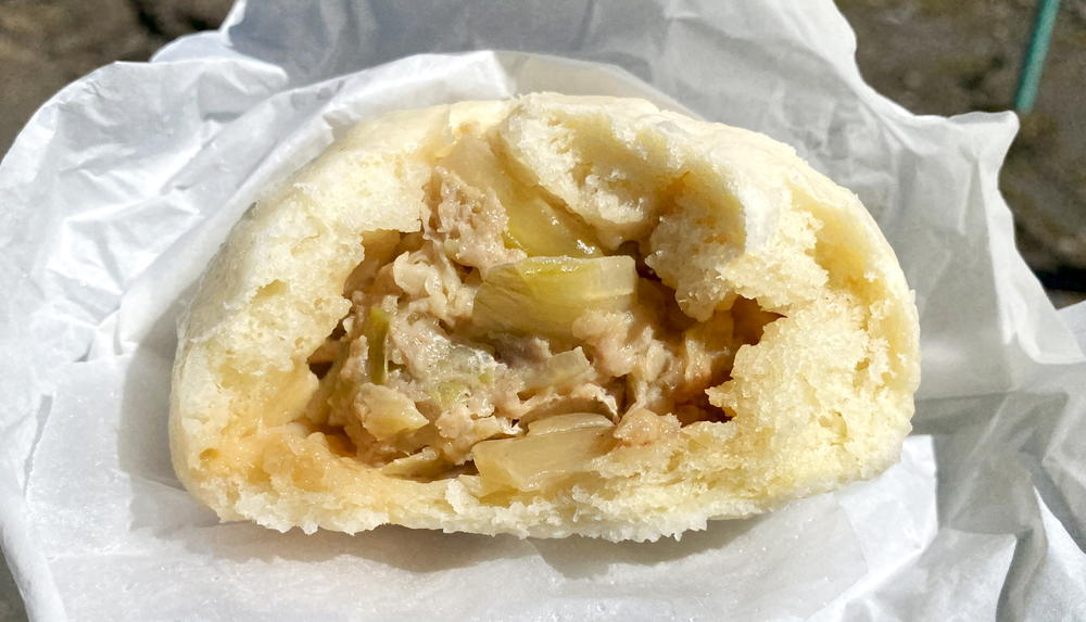 餡は自然に解れる柔らかさの豚肉と、大きくカットされた玉ねぎがシャキシャキ!こちらも素材由来の甘さと、塩味も控え目で全体的な味わいは結構あっさりしています。