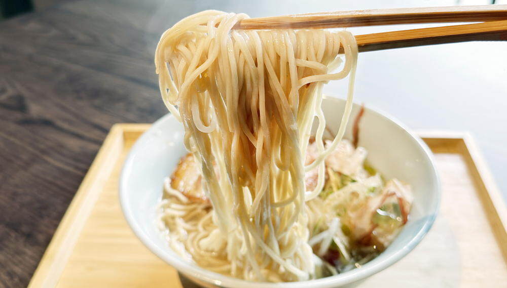 麺はやや太めで、固茹でではありませんが程よいコシと噛んでもっちりな仕上がり。素材の自然な甘みと風味も分かりやすく、スープともしっかり絡みます。