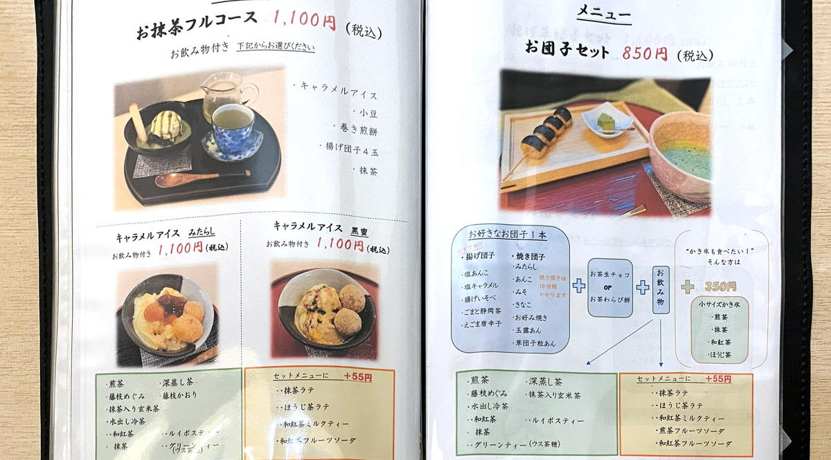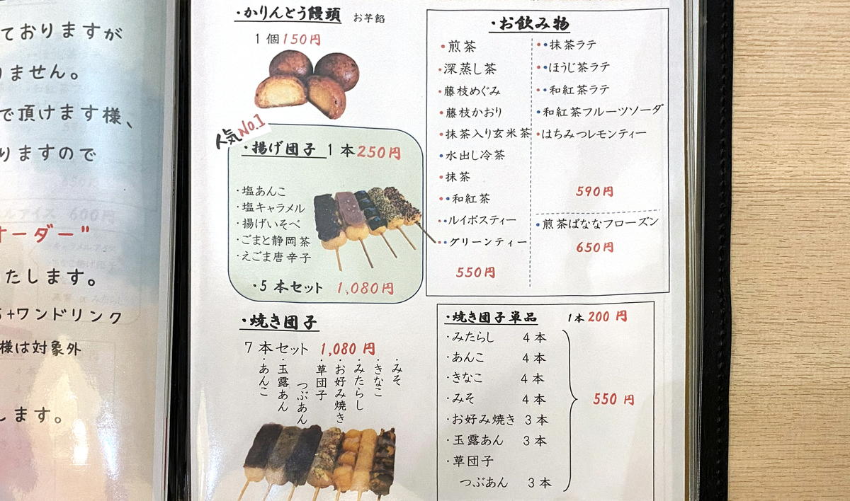 本店と同じく様々な和スイーツと静岡茶ドリンクなどを楽しめる、定食セットのような品や、単品注文も可能な豊富な団子、夏は茶氷も揃う人気店です!