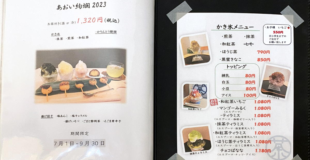 こちらは単品注文でもワンドリンクオーダーの規定はありません。かき氷メニューは9月末までの提供とのことです。