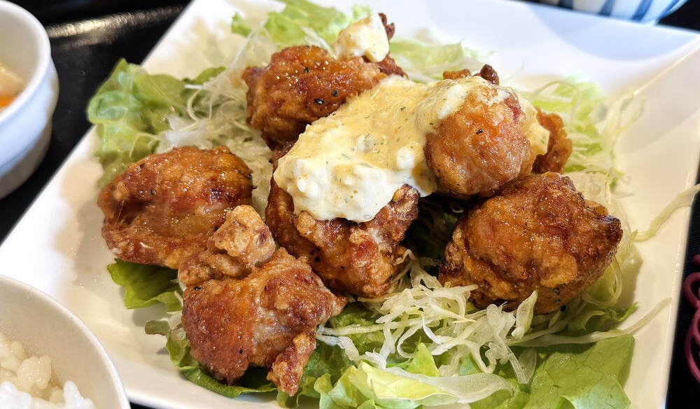 胡椒のピリ辛と甘めな味付けが相性絶妙で、塩味は割とあっさりながらやみつきな甘辛スパイシーな仕上がり。タルタルなしでも白米進む美味しさです!