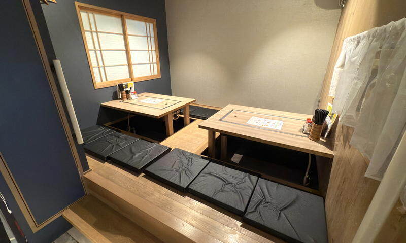 人宿町食堂から少しレイアウトは変わり、左のカウンター席がテーブル席に変更。奥の掘りごたつ座敷はそのまま活用されています。