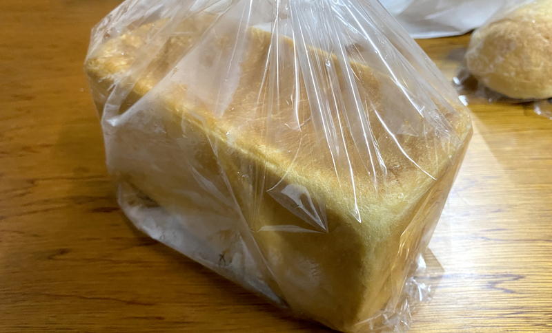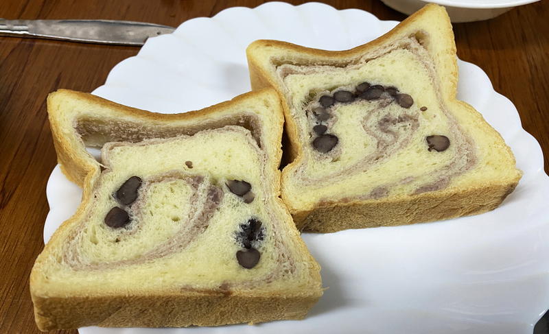 こちらは一斤サイズでの販売。あんこを入れて焼き上げた甘い食パン・かのこブレッド。写真だと分かりづらいですが、サイズ感は普通の食パンの半分くらい。