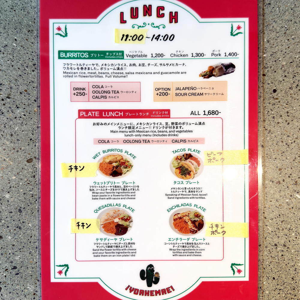 | 連絡先 | 公式Instagram @yoakemae_texmex |