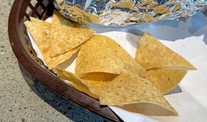 今回はランチで利用。お目当てのブリトーはトルティーヤチップス付きで3種類。