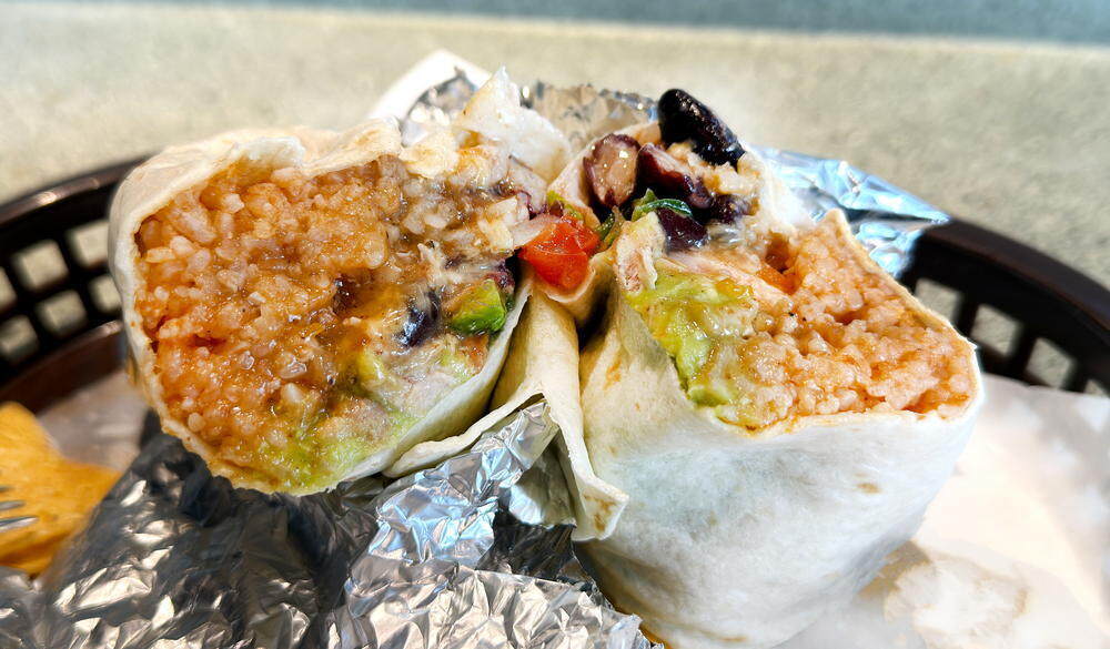 ブリトーは様々な素材をフラワートルティーヤ(メキシコ発祥の薄いパン)で包み、筒状に巻いた料理。クレープ生地よりはやや厚く、もっちり×しっとりな口当たり。