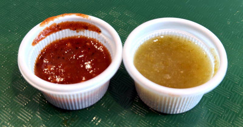カップで付いてくる2種のソース(サルサ)もお好みで。メキシコ料理定番とのこと。
